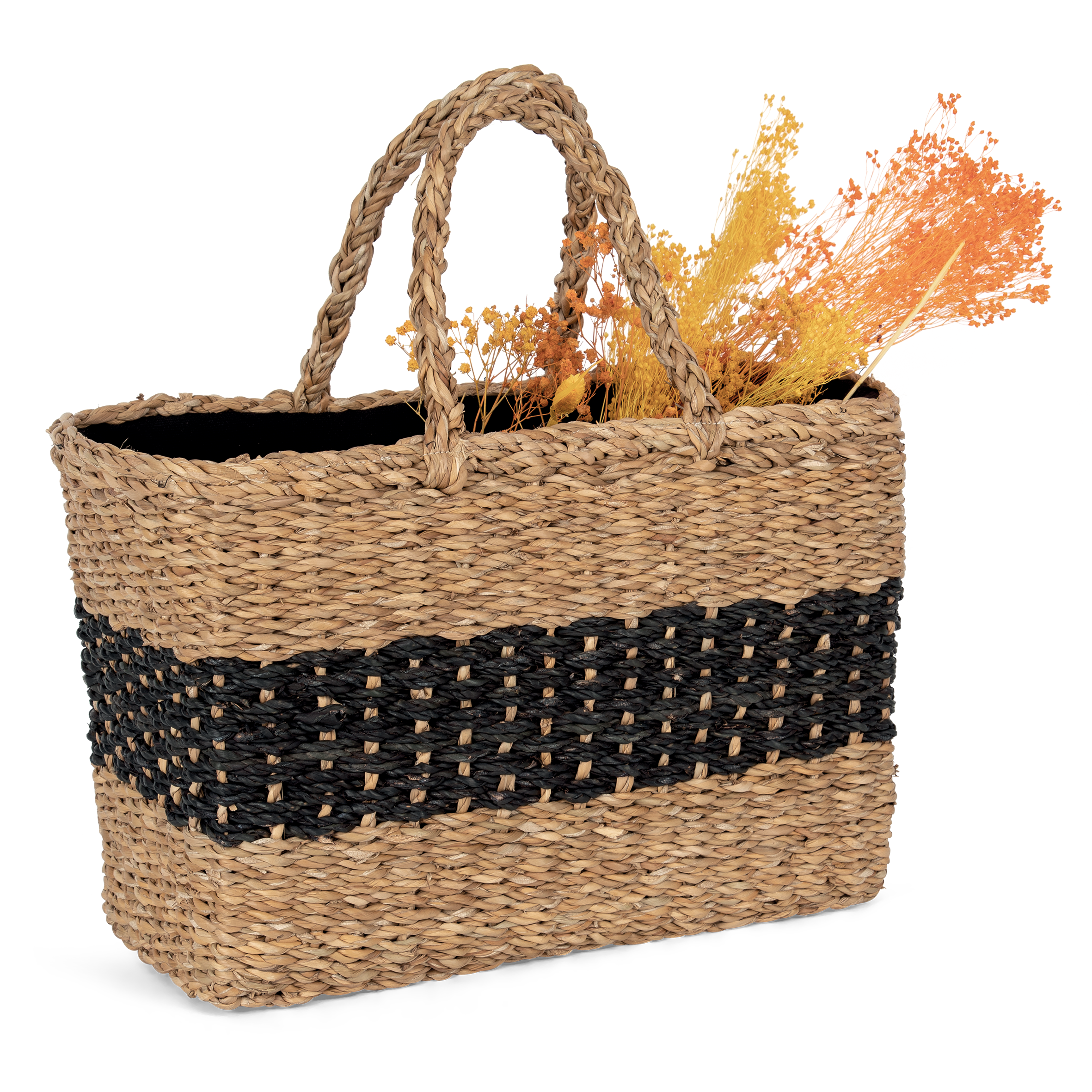 100 % Seegras. ONE SIZE (19 x 38 x 27cm). Inhalt: 21L. Dieses Produkt wurde aus pflanzlichen Seegrasfasern geflochten. Innenfutter in Black aus Cyclo-Faden, basierend auf 70 % recycelter Baumwolle, 28 % recyceltem Polyester und 2 % anderen Fasern. Verschluss per Kordelzug. Geflochtene abgerundete Tragegriffe. Dieser Korb ist das Ergebnis einer Zusammenarbeit mit dem Unternehmen HandTouch, Mitglied von ECOTA: Organisation für fairen Handel in Bangladesch als Beitrag für eine nachhaltigere Wirtschaft.